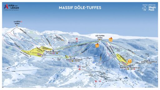 The Dôle-Tuffes range is accessible from the gates/parking areas of Les Jouvencelles, Le Balancier, La Darbella and Les Dappes.