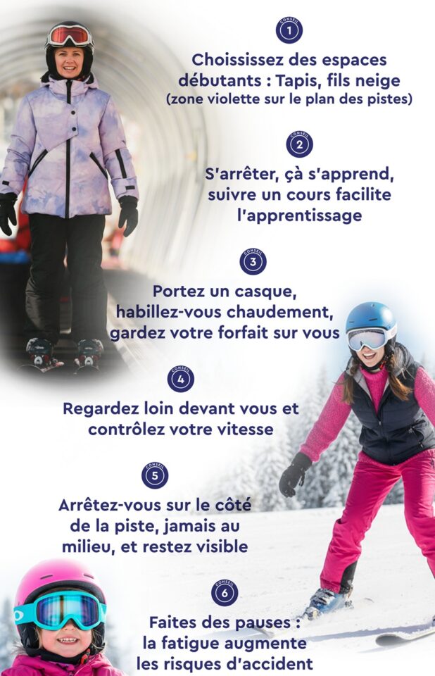 - Choisissez votre niveau : Commencez par les espaces débutants, les pistes vertes, puis passez aux bleues ; consultez le plan des pistes et les infos pistes en direct.